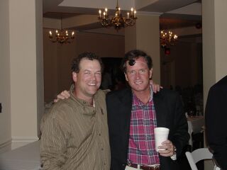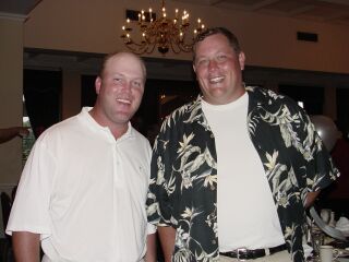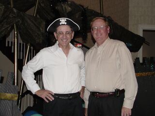 Brothers Mike and Don Jenkins enjoy the party "Pirate Plunder" after shooting first round 67 |